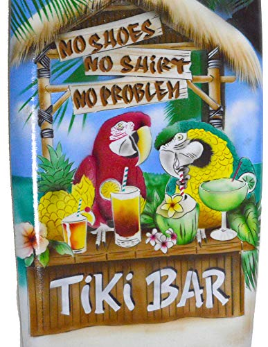 " NO SHOES NO SHIRT NO PROBLEM TIKI BAR " Beach Parrot Happy Hour Hard Wood Handmade AIRBRUSHED ART Corona Beer Palm Tree 39" Surfboard Sign Wall Plaque Art